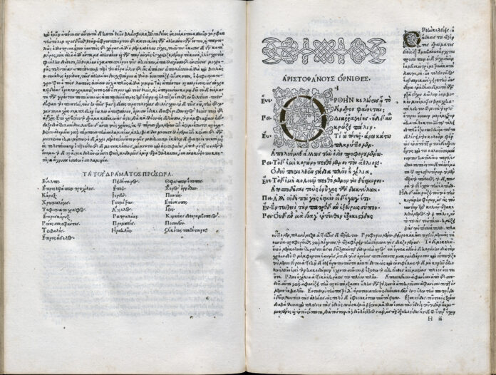 Κεντρικός άξονας της έκθεσης είναι η μετάδοση της ελληνικής γραμματείας μέσω της μετανάστευσης Βυζαντινών λογίων στην Ιταλία, η ανάπτυξη ελληνικών σπουδών και η συμβολή της τυπογραφίας στη Βενετία, με τον Άλδο Μανούτιο να καθιστά δυνατή τη μαζική διάδοση ελληνικών βιβλίων. Παράλληλα, αναδεικνύεται η ζωντανή ελληνική της καθημερινότητας, μέσα από λεξικά και γραμματικές, υπογραμμίζοντας τη συνέχεια και τη διαχρονική δυναμική της γλώσσας. Τα εγκαίνια της έκθεσης θα πραγματοποιηθούν τη Δευτέρα 9 Φεβρουαρίου 2026, στις 7 μ.μ., στο Περιστύλιο του Μεγάρου της Βουλής, από τον Πρόεδρο της Βουλής Νικήτα Κακλαμάνη.