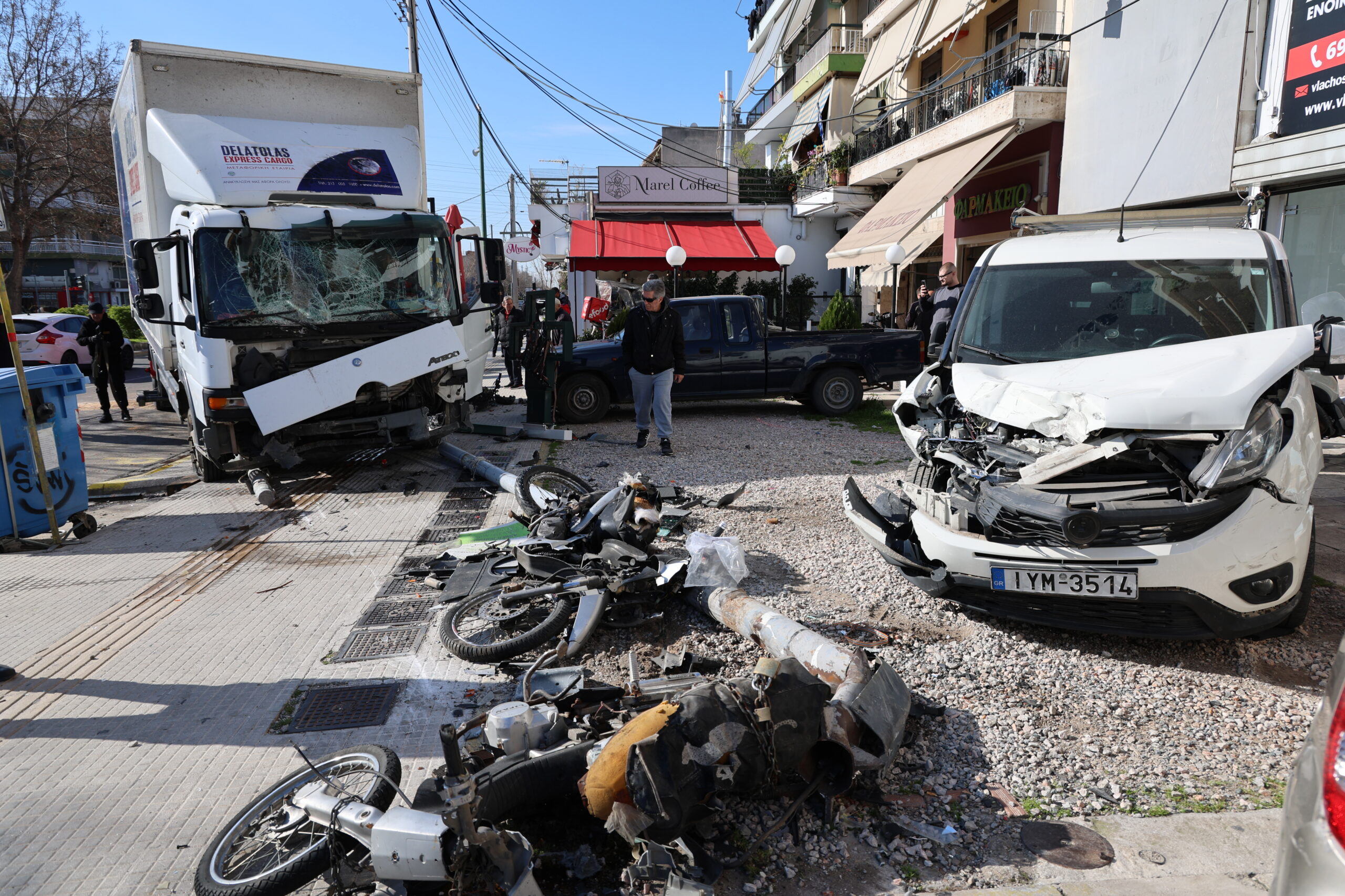 Σοβαρό τροχαίο σημειώθηκε την Παρασκευή 27 Φεβρουαρίου 2026 στη Λεωφόρος Θηβών – Αιγάλεω, όταν ένα φορτηγό ξέφυγε από την πορεία του και παρέσυρε αυτοκίνητα και σταθμευμένες μοτοσικλέτες. Σύμφωνα με τις πρώτες πληροφορίες, το φορτηγό κινούνταν προς το Αιγάλεω, πέρασε τη διαχωριστική νησίδα και εισήλθε στο αντίθετο ρεύμα, παρασύροντας τέσσερα αυτοκίνητα.