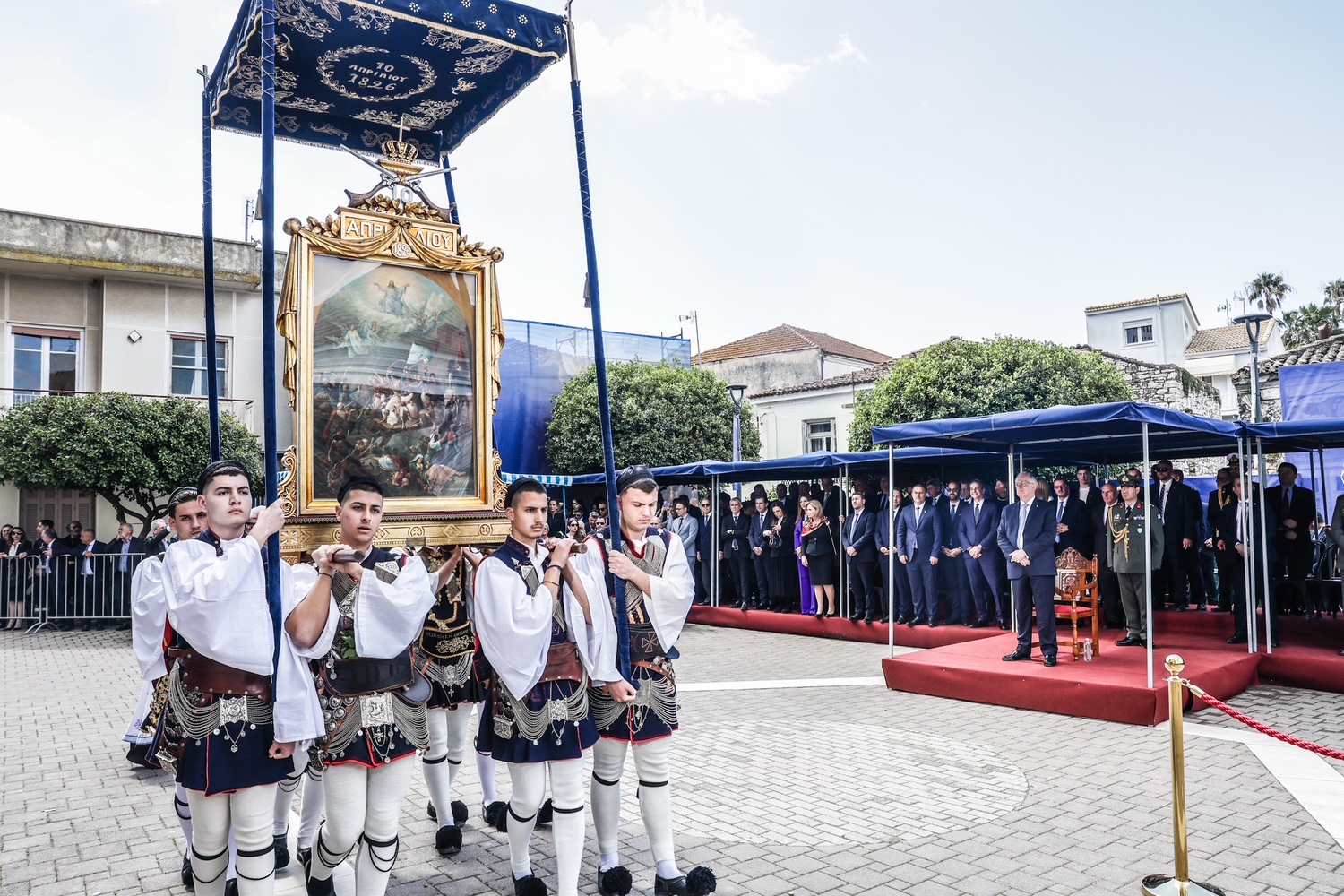 Μετά τη δοξολογία που τελέστηκε στον Ιερό Ναό Αγίου Σπυρίδωνος, προεξάρχοντος του Μακαριωτάτου Αρχιεπισκόπου Αθηνών και πάσης Ελλάδος κ.κ. Ιερωνύμου, ο Πρόεδρος παρακολούθησε την παρέλαση και στη συνέχεια συμμετείχε στην πομπή της Εικόνας της Εξόδου προς τον Κήπο των Ηρώων, όπου και κατέθεσε στεφάνι. Ακολούθως, απένειμε τα έπαθλα στους νικητές του 78ου αγώνα «Δρόμος Θυσίας» και προέβη στην ακόλουθη δήλωση: